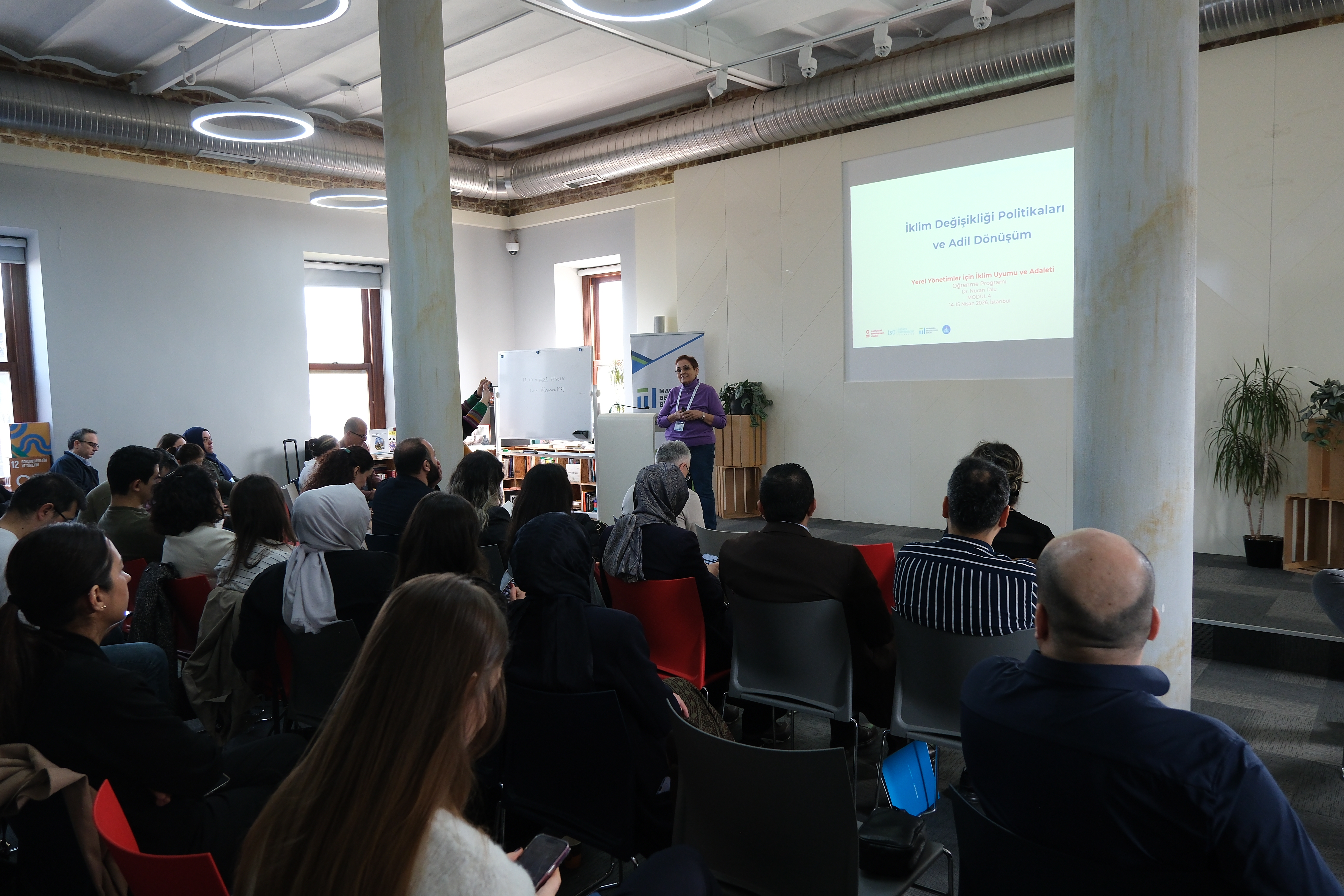 İklim politikalarının sosyal boyutuna odaklanan ikinci günde, Dr. Nuran Talu tarafından yürütülen oturumlarda adil dönüşüm yaklaşımı savunmasız grupların korunması, emek ve geçim kaynaklarının güvence altına alınması, yerel düzeyde sosyal koruma mekanizmaları ve iklim adaleti perspektifi çerçevesinde ele alındı. Aynı gün gerçekleştirilen bir diğer oturumda ise iklim değişikliğinin cinsiyet temelli etkileri; cinsiyete duyarlı veri ve analiz, kadınların yerel iklim eylem planlama süreçlerindeki rolü, toplumsal cinsiyete duyarlı bütçeleme ve finansman ile afet ve kriz süreçlerinde toplumsal cinsiyet eşitliği başlıkları üzerinden değerlendirildi.