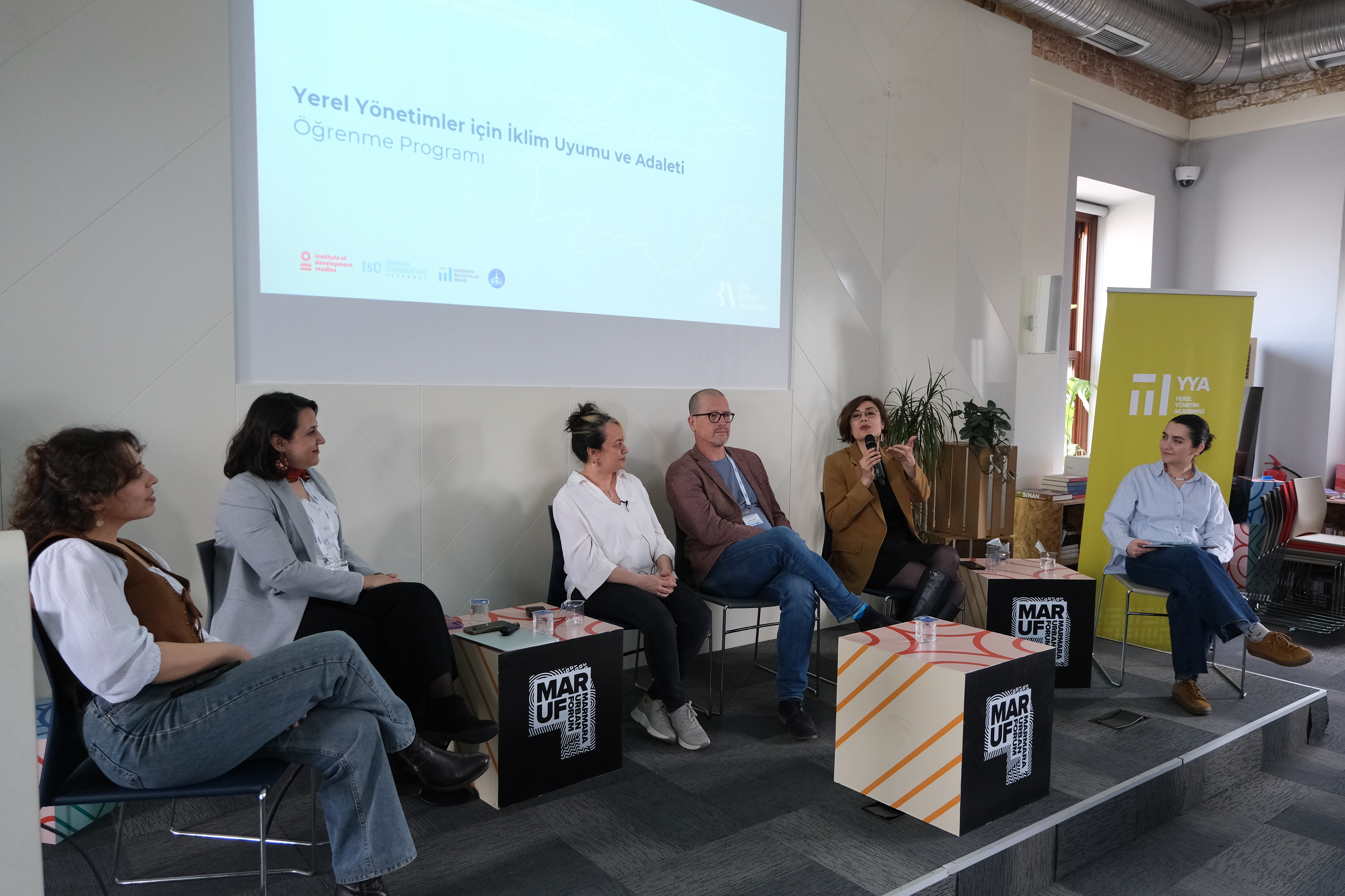 İlk günün sonunda Mekânda Adalet Derneği (MAD) iş birliği ve Postane ev sahipliğinde gerçekleştirilen saha ziyaretinde, iklim adaleti yaklaşımının kentsel ölçekteki somut karşılıkları yerinde incelendi. Ziyaret kapsamında Mekânda Adalet Derneği’nin iklim adaleti programı tanıtılırken, MAD ile Maltepe Belediyesi ortaklığında yürütülen “Yurttaş Bilimiyle Sıcak Dalgalarına Karşı Kentsel Dayanıklılığı Artırmak” projesi üzerinden veri üretimi, ölçüm araçları ve yerel yönetimlerle kurulan iş birliği modelleri paylaşıldı. Ziyaretin devamında Postane’nin iklim ve ekoloji duyarlı yaklaşımıyla geliştirdiği mekansal model tanıtıldı ve katılımcılar mekânı yerinde deneyimleme fırsatı buldu.
